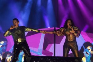 Canciones como “Colegiala”, “Enferma de Amor”, “Te quiero tanto”, “Ni tu ni nadie”, “Más de lo que te imaginas”, “Aquí” y “No te extraño” fueron las más coreadas de la noche. Uno de los momentos más esperados fue Fey con «Media naranja».